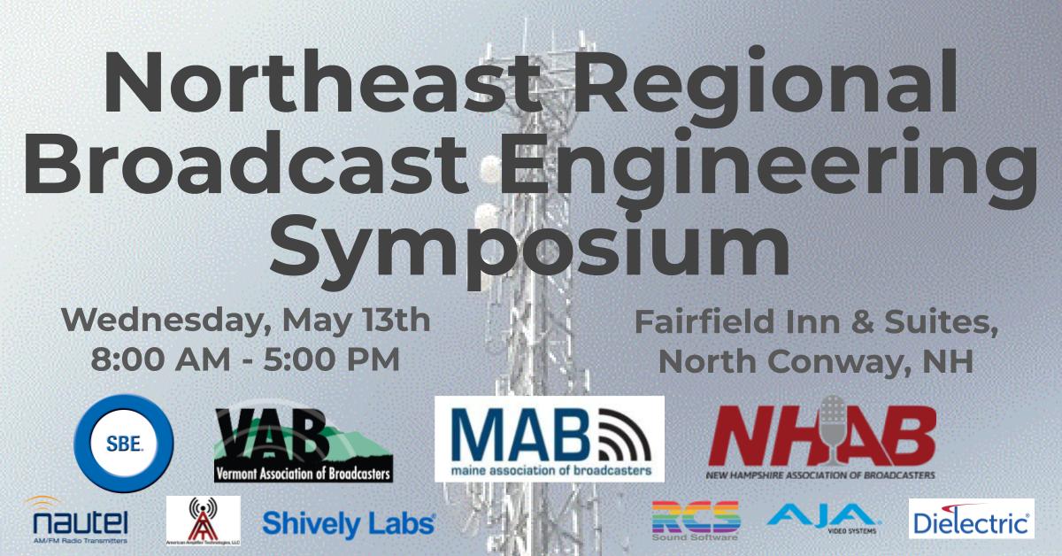 The Society for Broadcast Engineers, in conjunction with the state broadcast associations for Maine, Vermont and New Hampshire, will host a ANOTHER one-day series of engineering-on-a-budget sessions Wednesday, May 13, 2026 at the Fairfield Inn & Suites, 165 Skimobile Road in North Conway, NH.